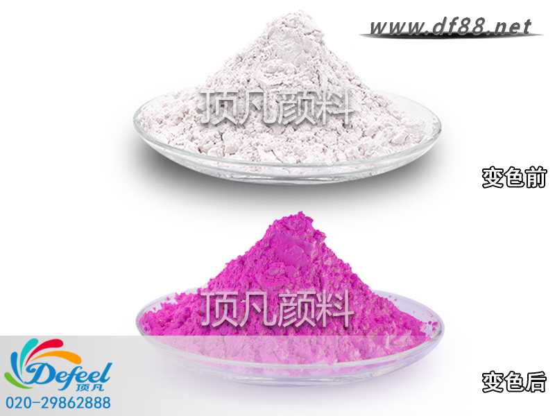 广州顶凡变色颜料光变粉颜色是常规的进本四色:红色、黄色、蓝色、紫色,但是在这进本四色基础上可以随便搭配成客户想要的颜色。而且顶凡注塑光变粉时由无色变有色的,当特定波长的紫外光源不在时,即恢复原来的白颜色。