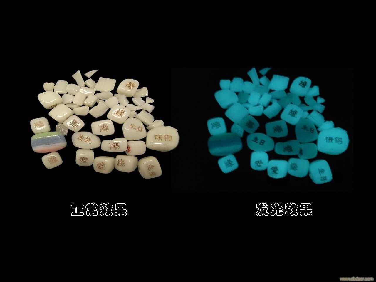 刚才说了目前市面上有2种夜光粉,长效余辉夜光粉讲了,那还有一种好做硫化锌夜光粉,因为长效余辉夜光粉的主要原料是稀土,所以它的发光度相对比硫化锌夜光粉高,且发光持续时间长。这也导致长效余辉夜光粉是国内主要生产销售的夜光粉种类。硫化锌夜光粉的优点就是吸光快,而且吸光要求低(微弱光源即可激发),但也正是它吸光快的原因,所以发光时间比长效余辉夜光粉短。