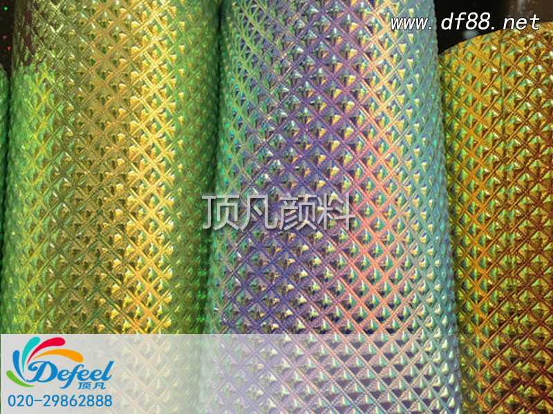 聚酯金葱粉: 该产品由真空金属质聚酯膜组成,其彩色层为热固交叉结合环氧层,可产生的颜色种类广泛,可通过丝印、涂层、喷撒方式用于木、纸、布、金属、皮具、陶瓷等多种材料上。形成装饰或反光等特殊和醒目的效果,其耐温为180℃。