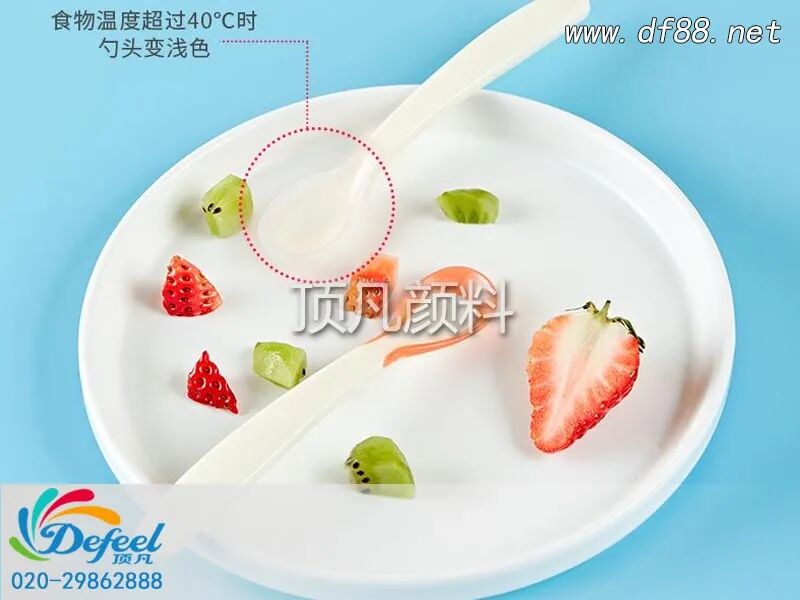 感温变色粉在母婴产品的运用中能够更好的呵护小孩成长,家长们可以通过感温变色勺,感温变色水杯和感温变色奶瓶等通过颜色的变化指示食物温度范围的产品,从而提醒宝爸宝妈食物过烫,不适合宝宝进食。。