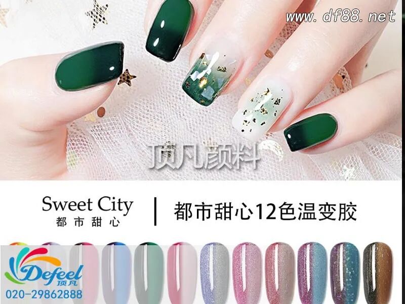 市场上普通的指甲油千篇一律,颜色都比较单一,想要五彩缤纷的颜色就要准备众多不同色彩的指甲油,而变色效果的温变指甲油就通过感温变色粉的变色原理,实现随温度变化来改变指甲油的颜色。