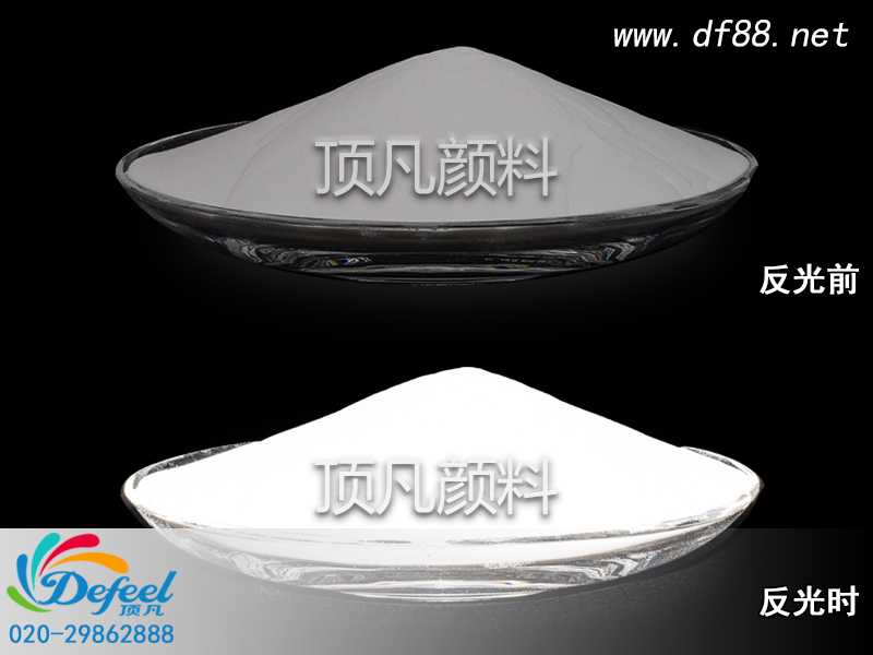 透明反光粉其实就是白色反光粉,色泽是白色,顶凡供应的透明反光粉目数有200~800目。顶凡反光粉具有极强的逆向回归反射性能,能将95%的光线直接反射回光源处。